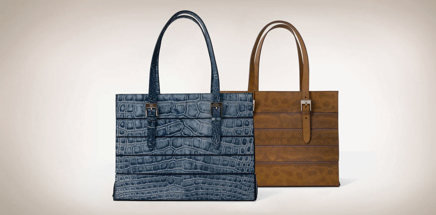 Il design, dalle linee essenziali e geometriche, è valorizzato dalla preziosità dei pellami esotici selezionati, dai loro abbinamenti e dalla pregiata manifattura.